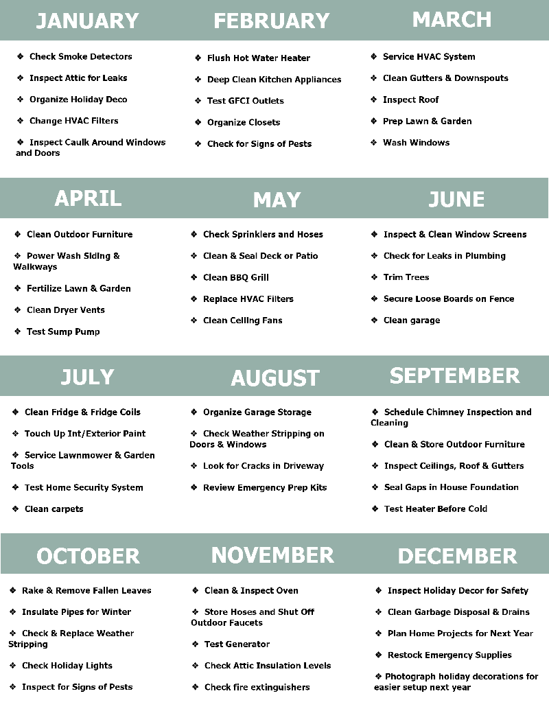 Free Home Maintenance List Download