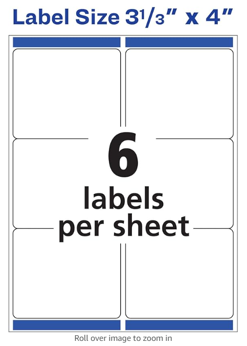 NOTE:  Any postal labels that are approximately 3.50" x 4" will do.  Avery has them on Amazon or you can use the Office Depot brand.   Most of them come in the color white which works well.