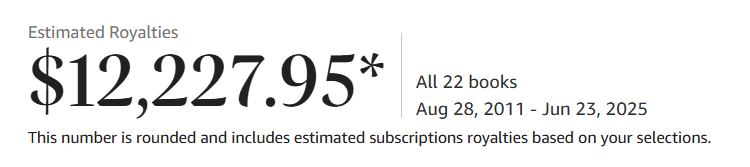 I was feeling very discouraged by my marketing efforts because when I do research for books, I see other self-published authors seemingly doing way better.   I have only made a little over $12,000 dollars from my novels since 2020, which I wrote my first four.  Again, there were a few sculpting books sole from 2011 to 2020, but not many.  Most of the $12,227.95 is from the novels I published from 2022 to date.