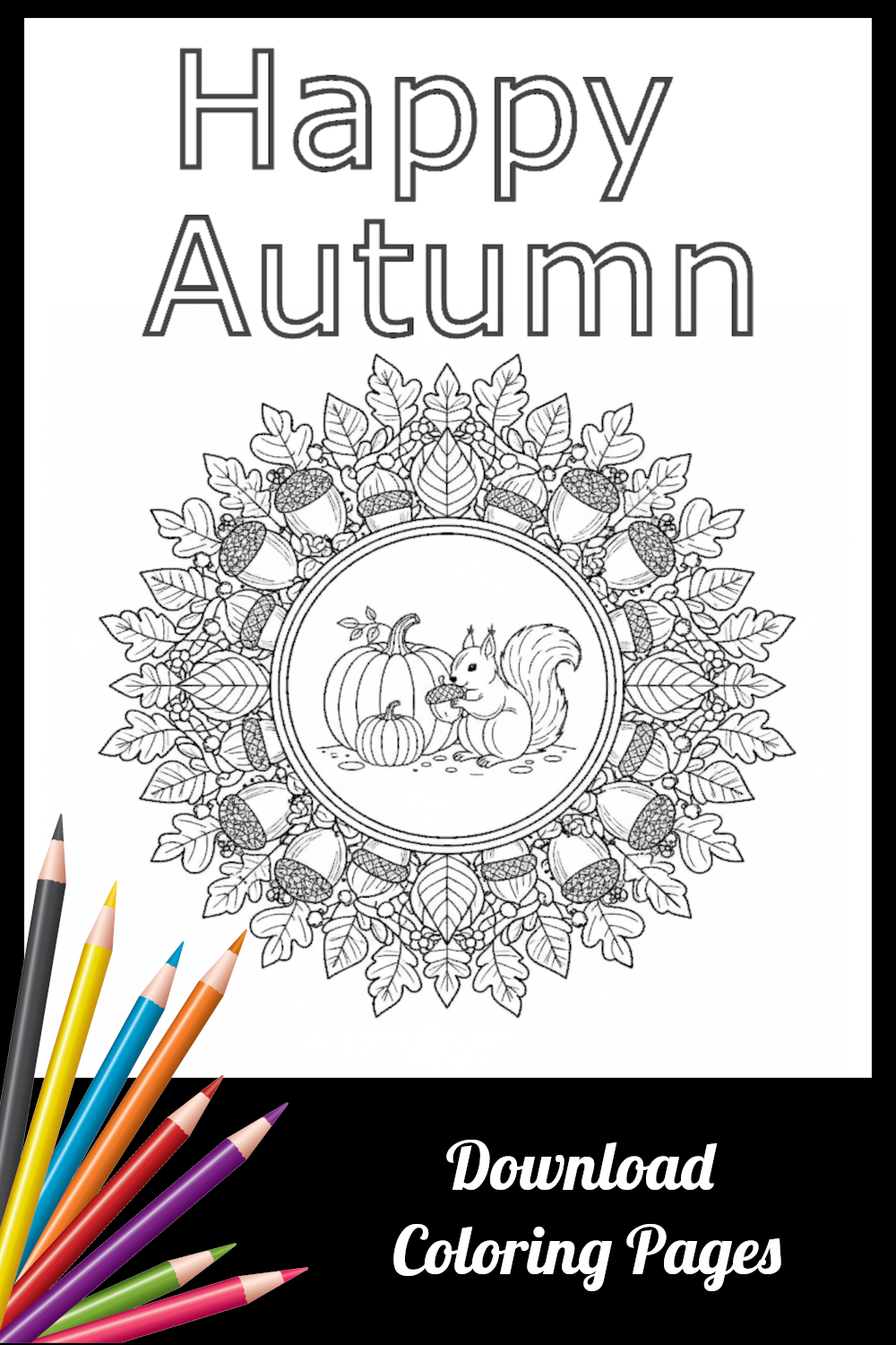 Coloring Page – Happy-Autumn-Squirrel